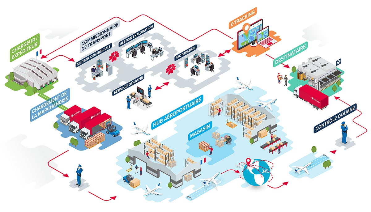 Afin de développer ce moyen de transport de marchandises, de nombreux hubs aéroportuaires se sont organisés en conséquence. C’est ainsi que l’aéroport de Paris Roissy – Charles de Gaulle est devenu le hub français pour absorber et sécuriser les transports de marchandises.